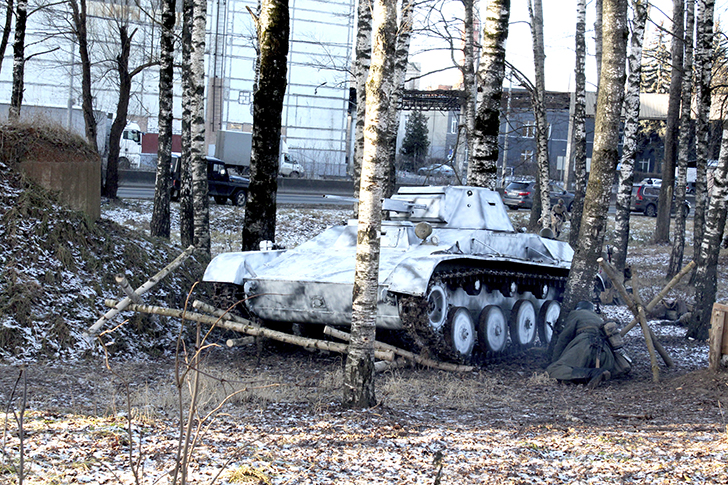 Немецкие солдаты отстреливались из магазинных винтовок Mauser 98k. Танк разорвал проволочные заграждения, что позволило красноармейцам ворваться в немецкие окопы и блиндаж. И тогда, хоть и с потерями, боевой немецкий пост был взят с уничтожением неприятеля.