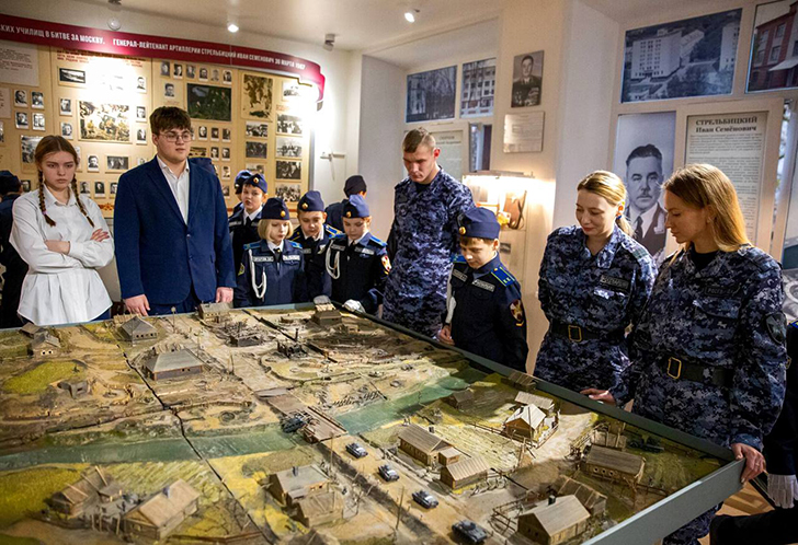 Экскурсия началась с рассказа о подвиге Подольских курсантов, которые ценой собственной жизни остановили врага на подступах к Москве. Учащимся показали документальный фильм о событиях Великой Отечественной войны, после чего экскурсоводы представили подробную интерактивную карту сражений. На инсталляции ребята увидели реконструкции реальных боевых эпизодов.
