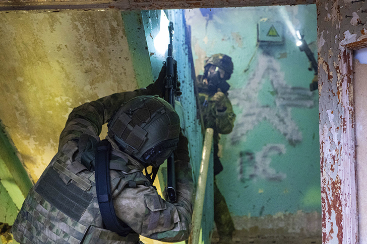 Сотрудники СОБР «Гюрза» Главного управления Росгвардии по Московской области провели тактико-специальную тренировку по отработке штурмовых действий в подмосковном Солнечногорске.
