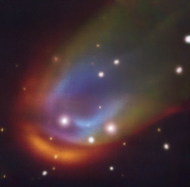 Открытие бросает вызов современным представлениям о взаимодействии материи в экстремальных двойных системах. Используя Очень Большой телескоп (VLT) Европейской южной обсерватории (ESO), астрономы обнаружили поразительное и совершенно неожиданное явление у «мертвой» звезды RXJ0528+2838. Вокруг этого объекта – белого карлика, расположенного примерно в 730 световых годах от Земли, – зафиксирована красивая и протяженная ударная волна, происхождение которой не укладывается в существующие астрофизические модели.