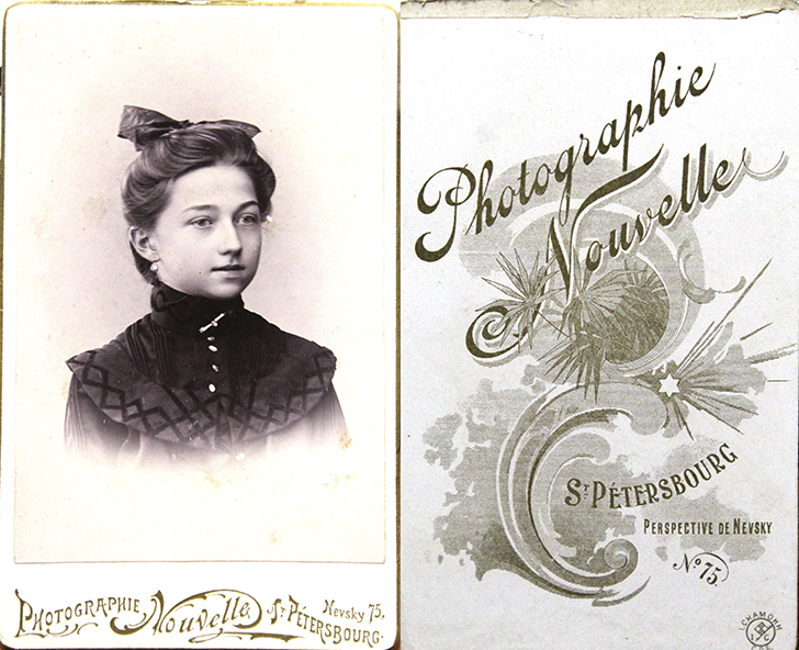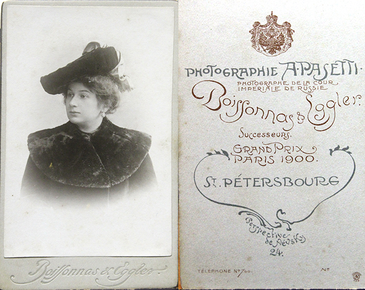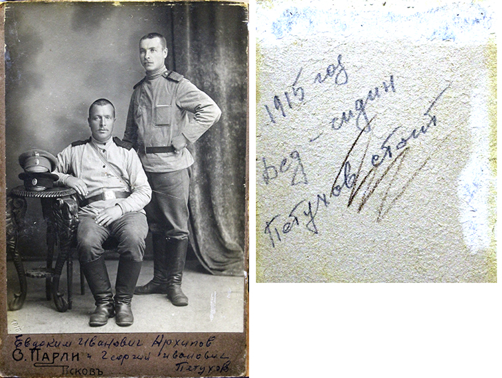Еще были фотографии клинских пейзажей фотографа А. Пегова и портреты наклеенные на паспорту с тиснением автора и адресом его фотоателье.