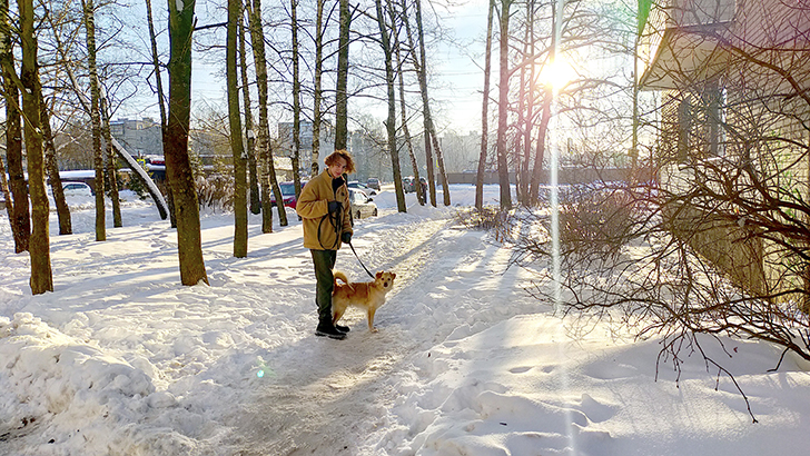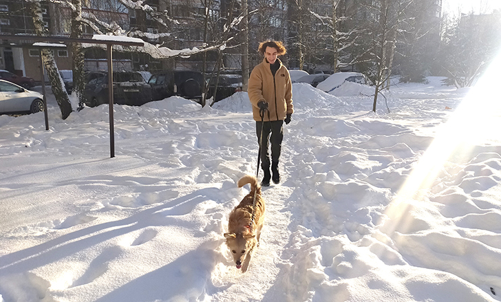 Его местом стала большая хозяйская кровать, появились свои игрушки, долгие прогулки на поводке и исследование нового города. Теперь у него есть миссия — охранять своего Димку и безгранично радоваться его возвращению с работы. В его поведении есть одна трогательная деталь: корм в миске он не трогает, пока хозяина нет дома.