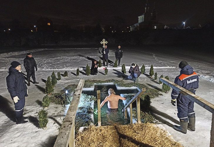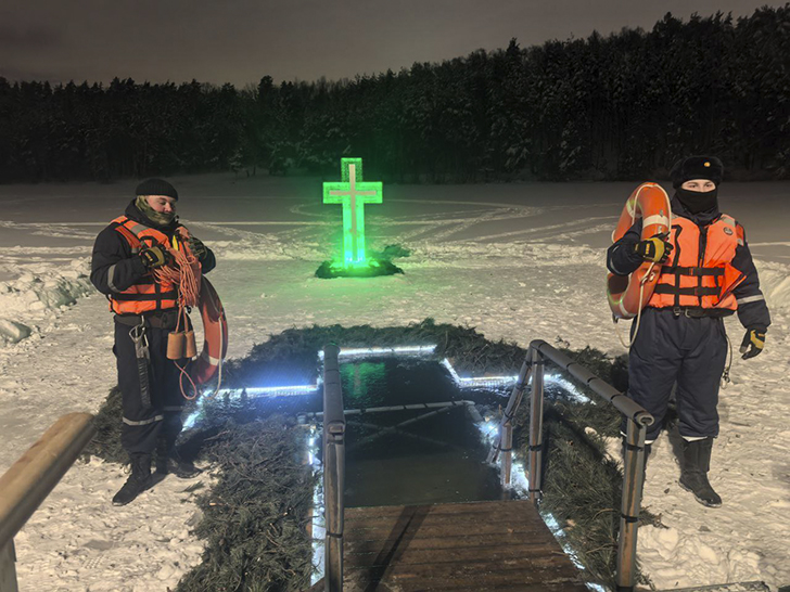 В ночь с 18 на 19 января работники ГКУ МО «Мособлпожспас» обеспечивали безопасность традиционных крещенских омовений в Подмосковье. В этом году на территории региона было подготовлено более двухсот специально оборудованных мест для купания, включая проруби на открытых водоёмах, а также купели в помещениях и на улице. Рядом с ними были развернуты пункты обогрева, где верующие могли переодеться и согреться.