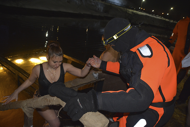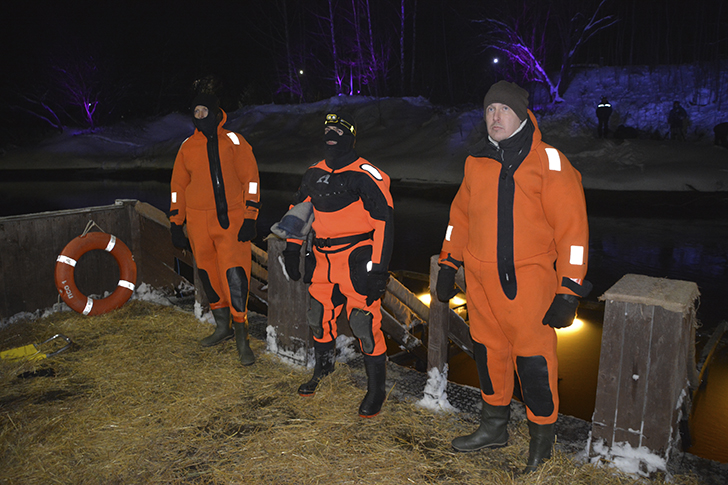 В течение всей ночи спасатели несли постоянное дежурство непосредственно у купелей, осуществляя страховку каждого окунающегося.