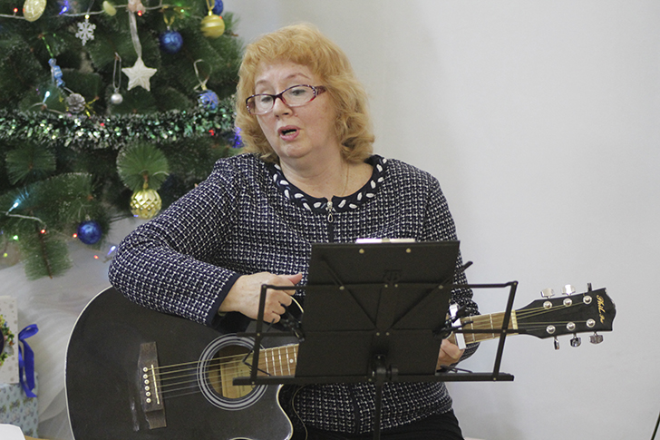 Но этот вечер был не только о прошлом. Он был о чувстве, о той нити, что связывает нас с ушедшими днями. И эту связь мастерски воплотила в музыке Елена Казмерчук. Её гитара и проникновенный голос стали лирическим сердцем встречи. Исполненные ею душевные, до боли знакомые песни добавили рассказу невероятной теплоты и личной сопричастности.