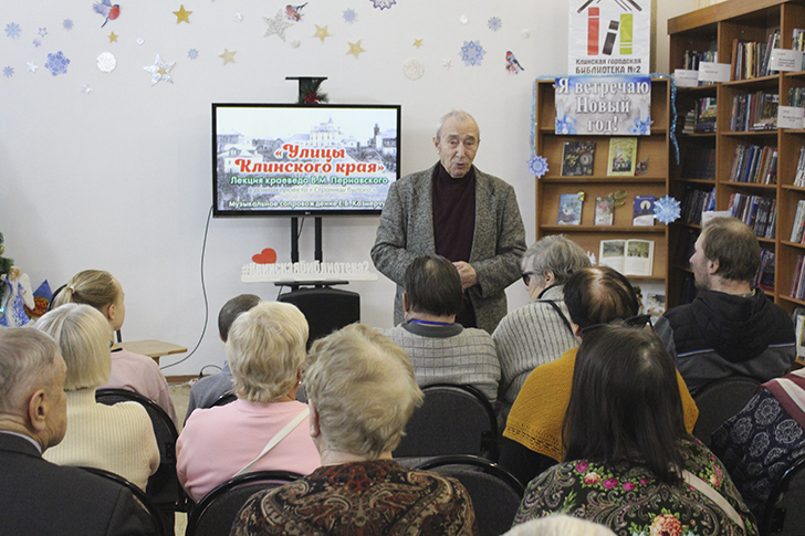 Проводником в этом путешествии выступил краевед, поэт и писатель Вячеслав Пернавский, чей увлекательный рассказ заворожил слушателей с первых слов. История Клина — это история его улиц, молчаливых свидетелей смены эпох, событий и поколений. Вячеслав Моисеевич, словно искусный реставратор времени, показал, как менялся облик нашего древнего города на протяжении многих лет.