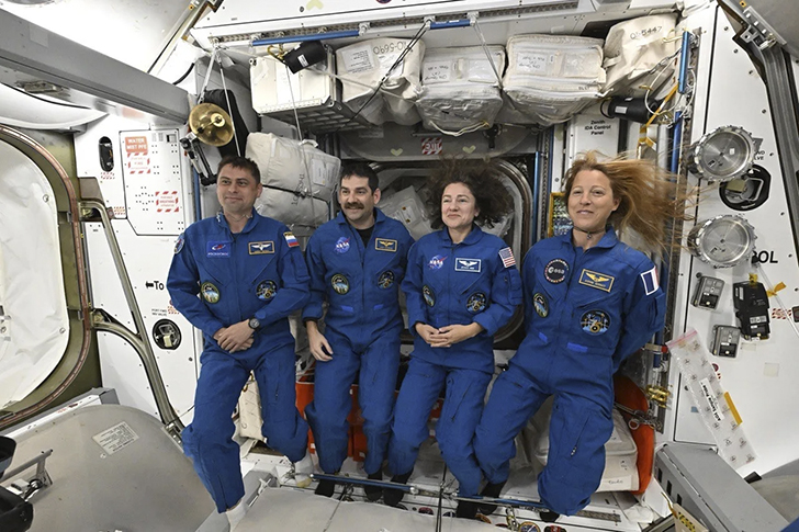 На МКС прибыли наш космонавт Андрей Федяев, астронавты Джессика Меир, Джек Хэтэуэй и Софи Адено.