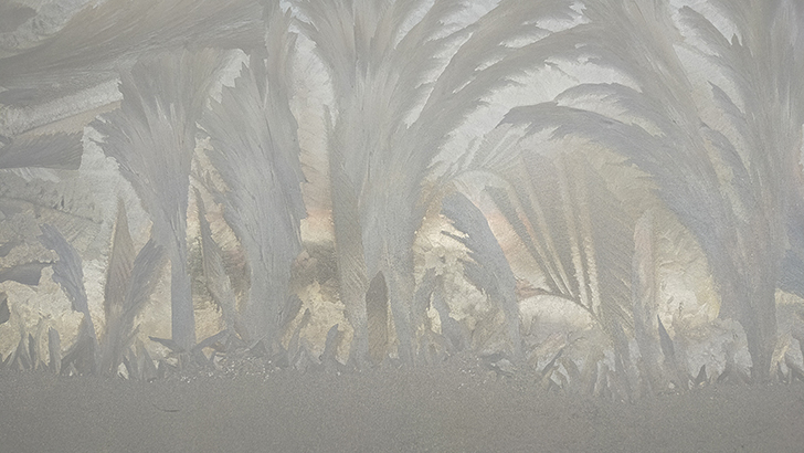 А потом началась магия пути. Солнечный день, играя на стёклах автобуса, превратил их в холсты для самого Деда Мороза. Морозные узоры — витые, кружевные, абсолютно уникальные — казались древней вязью, таинственными письменами зимы, через которые мы смотрели на пробуждающийся город.