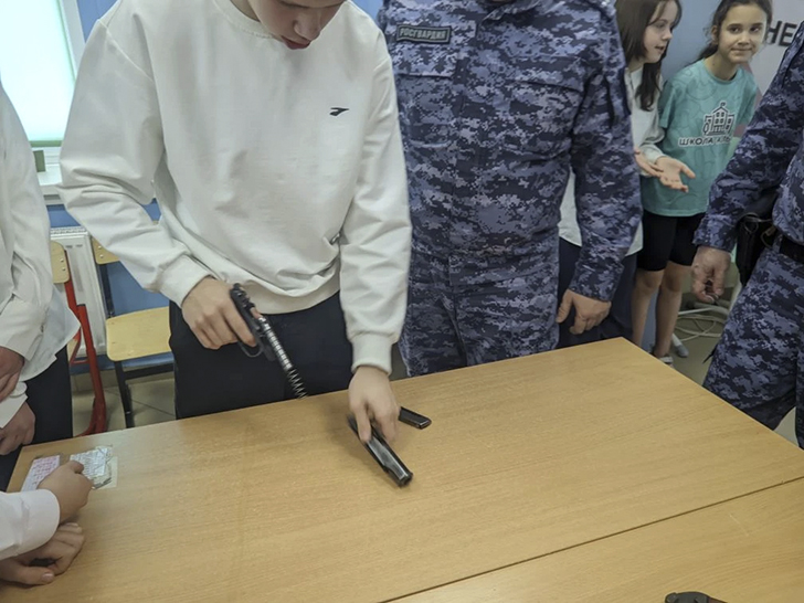 У мальчишек и девчонок особый интерес вызвал мастер-класс по сборке и разборке учебных автомата Калашникова и пистолета Макарова. Также, каждый желающий смог почувствовать себя настоящим защитником и примерить тяжелые бронежилеты и защитные шлемы. Многим ученикам это занятие позволило иначе взглянуть на службу в рядах Росгвардии.