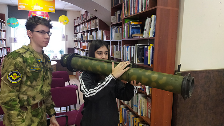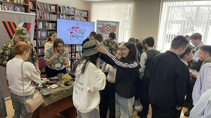 В стенах Центральной городской библиотеки, где обычно царит тишина, вдруг зазвучали голоса иного времени. Здесь, среди книжных стеллажей, хранящих мудрость веков, для учащихся прошёл особый Урок мужества.
