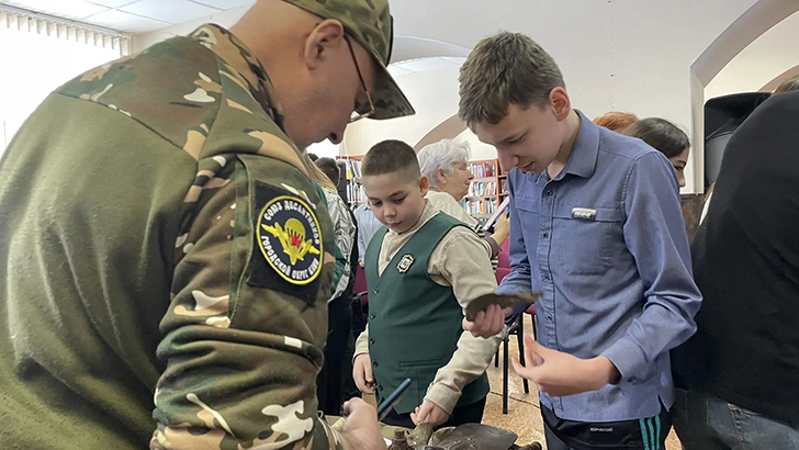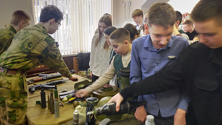 А потом началось самое интересное. Ребятам дали возможность не просто увидеть — прикоснуться. К современным автоматам. К каскам сорок первого. К осколкам снарядов, хранящим тепло минувших боёв.