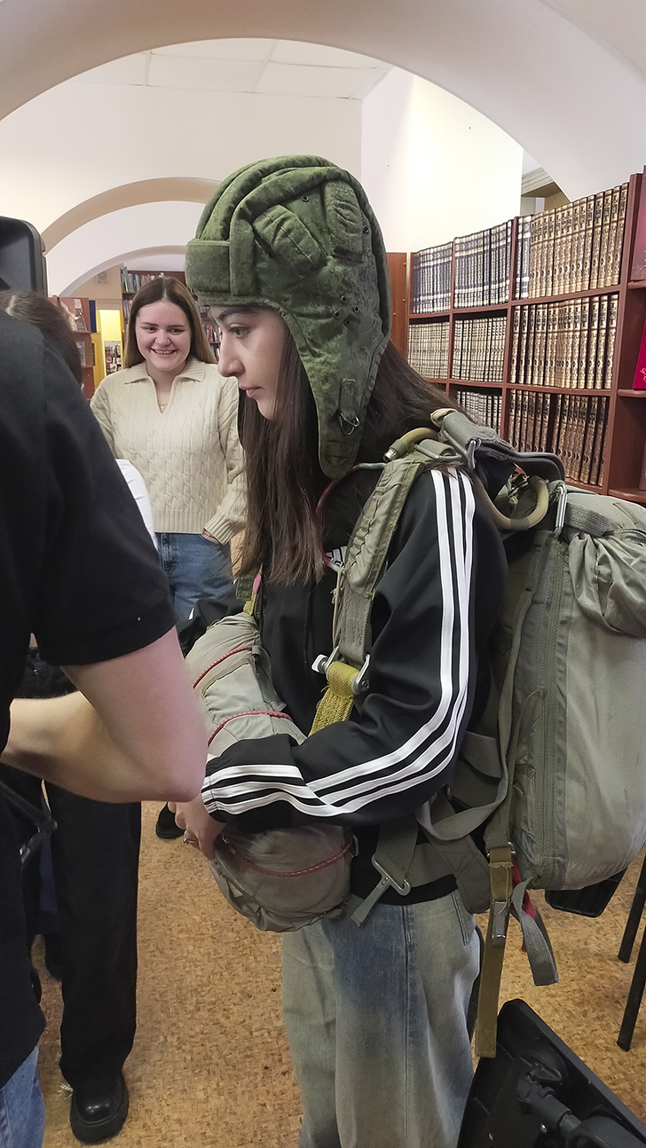 Гремели затворы, щёлкали фотоаппараты, глаза горели восторгом и благоговением. Кто-то примерял бронежилет, кто-то осторожно гладил пробитую крышку котелка, словно пытаясь через металл услышать голос неизвестного солдата. Когда встреча подошла к концу, в воздухе всё ещё висело что-то невыразимое.