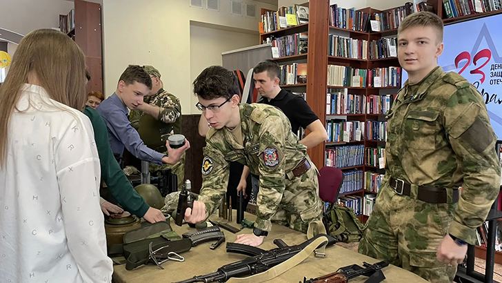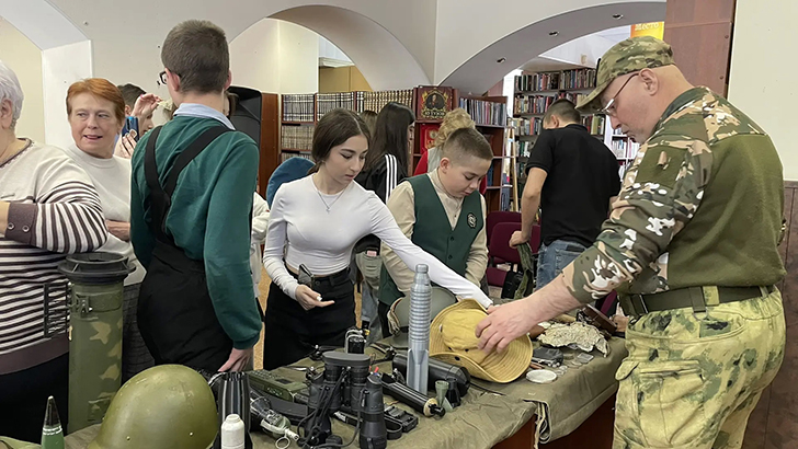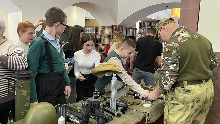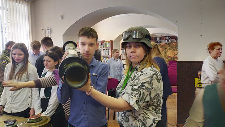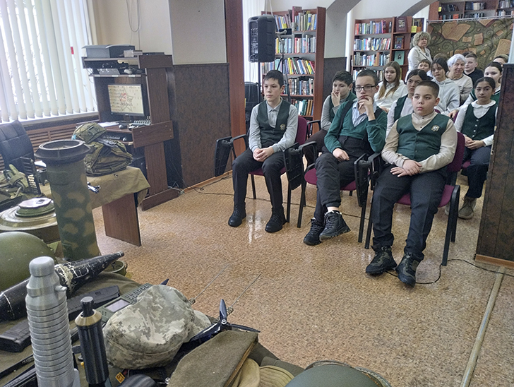 В стенах Центральной городской библиотеки, где обычно царит тишина, вдруг зазвучали голоса иного времени. Здесь, среди книжных стеллажей, хранящих мудрость веков, для учащихся прошёл особый Урок мужества.