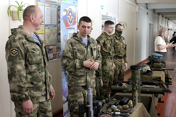 Когда официальная часть закончилась, началось самое главное. Ребята обступили выставленные экспонаты — каждый хотел прикоснуться, почувствовать, впустить в себя эту энергетику. Гремели затворы автоматов, шуршали плащ-палатки, щёлкали фотоаппараты.