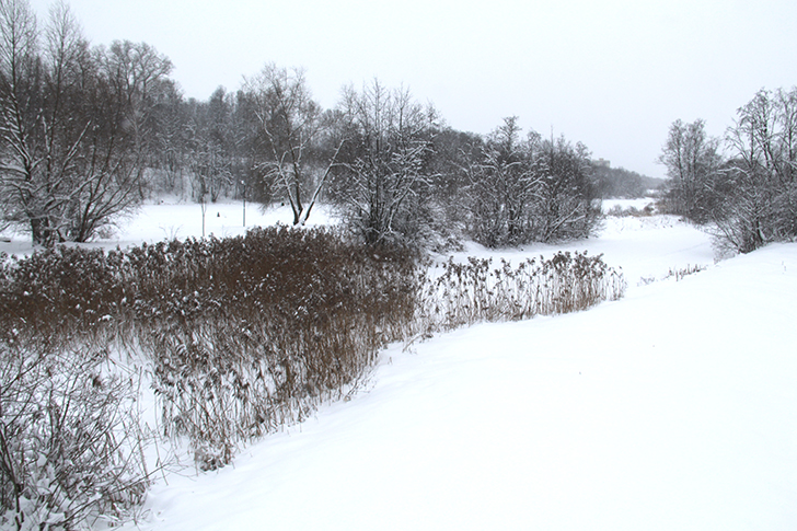 А природа-художница щедра на сюжеты. Она рисует необычными красками: свинцово-перламутровые облака накануне снегопада, холодное, низкое солнце, отбрасывающее длинные синие тени и создающее ослепительные блики на глянце льда.