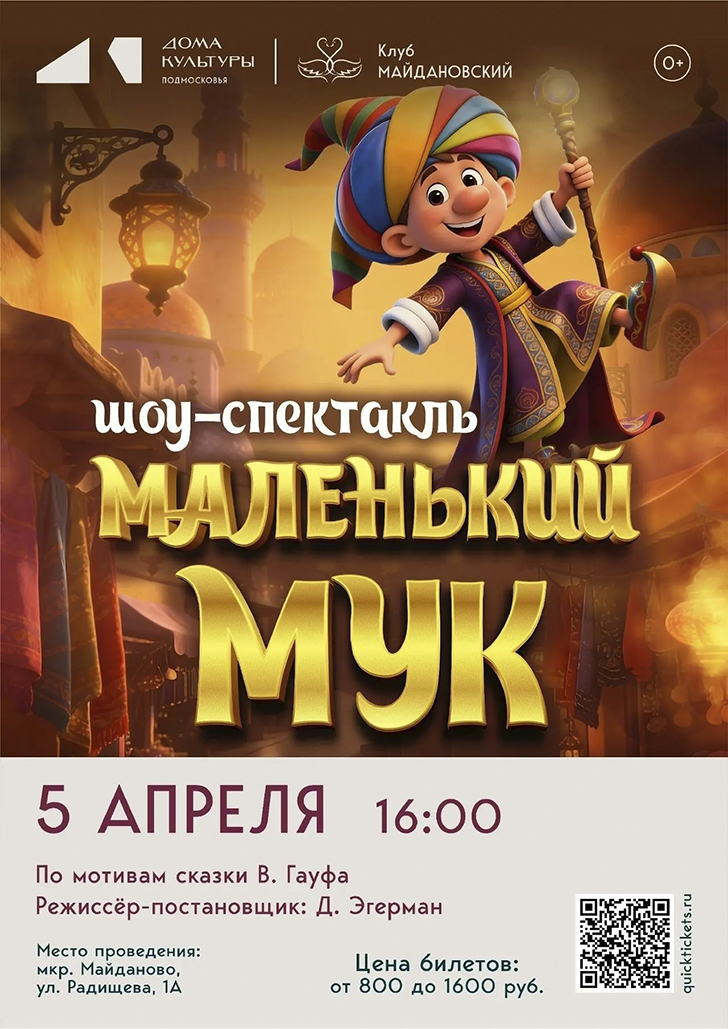 Удивительный шоу-спектакль с богатым восточным колоритом, с волшебными превращениями, невероятными танцами, интерактивными играми, красивыми песнями, чудесными открытиями! И, конечно же, с торжеством большого доброго сердца Маленького Мука.