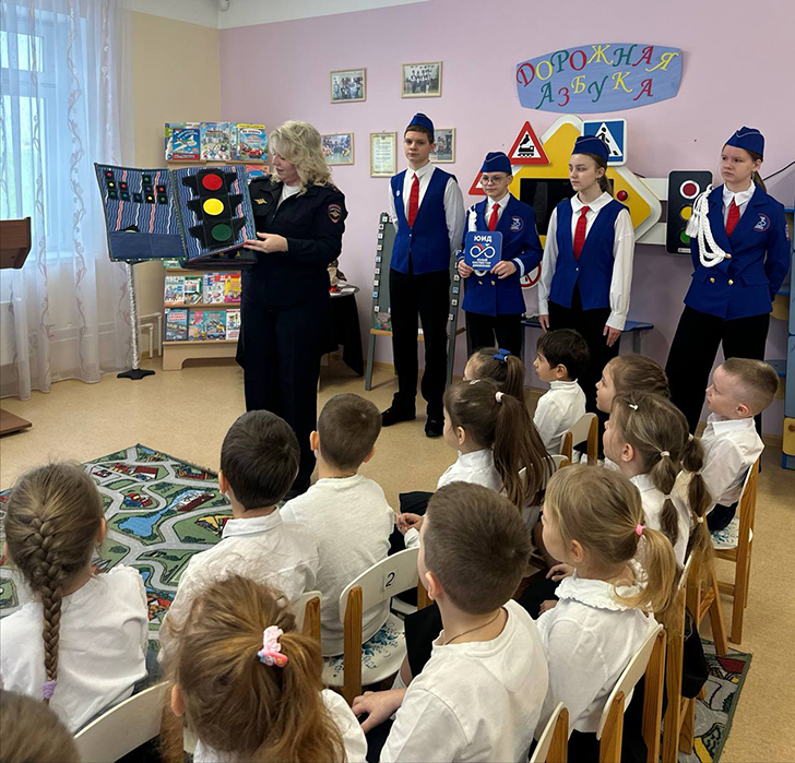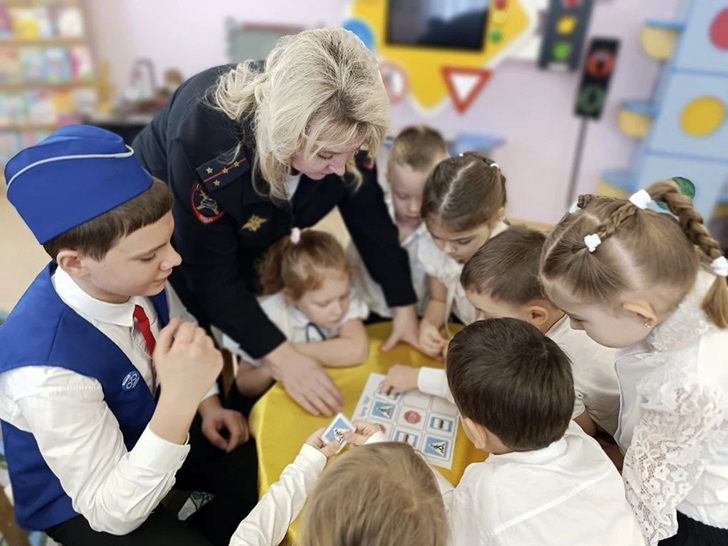 Гостем встречи стала инспектор по пропаганде безопасности дорожного движения городского округа Клин, капитан полиции Волкова А. А. Вместе с юидовцами она помогла дошкольникам в увлекательной форме познакомиться с основными правилами поведения на дороге.