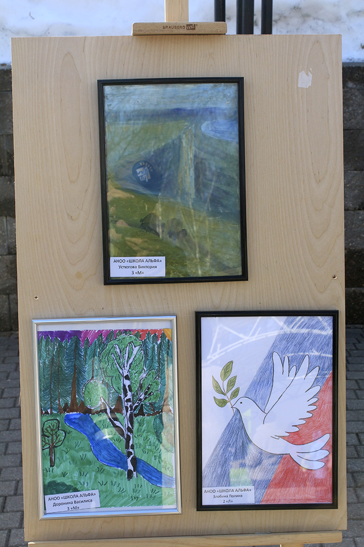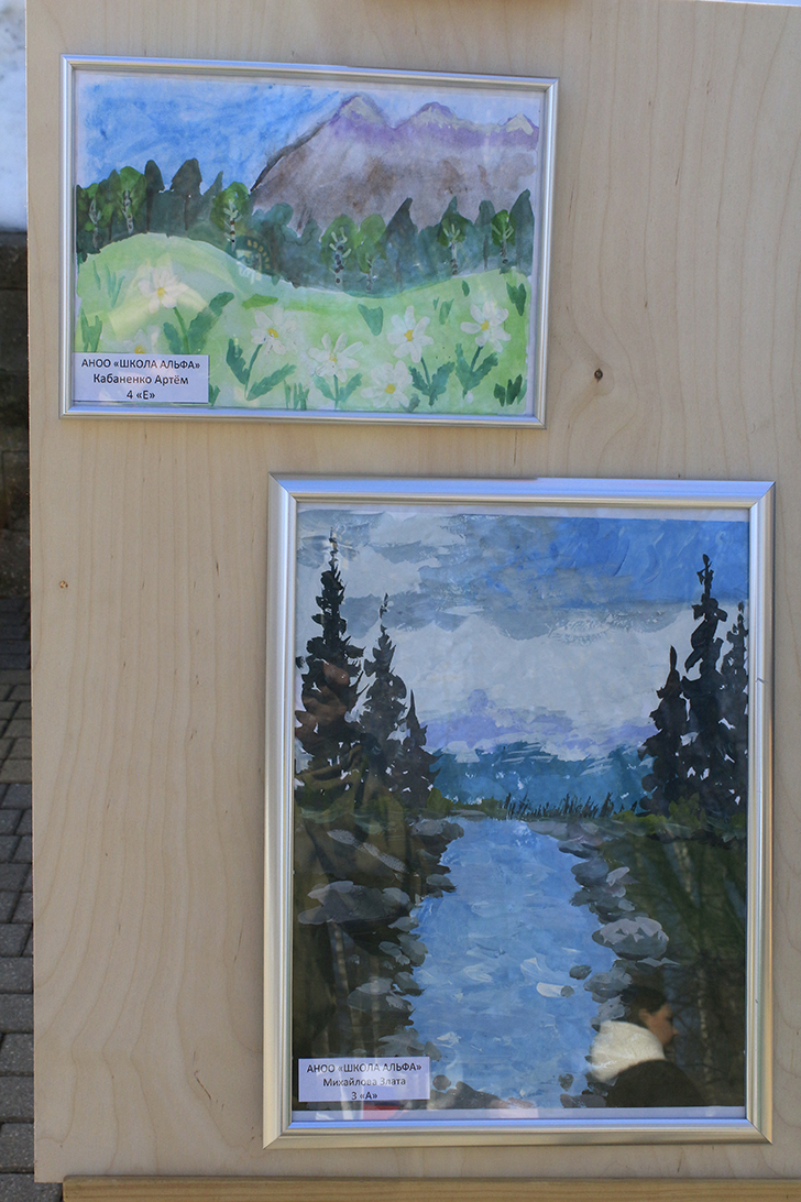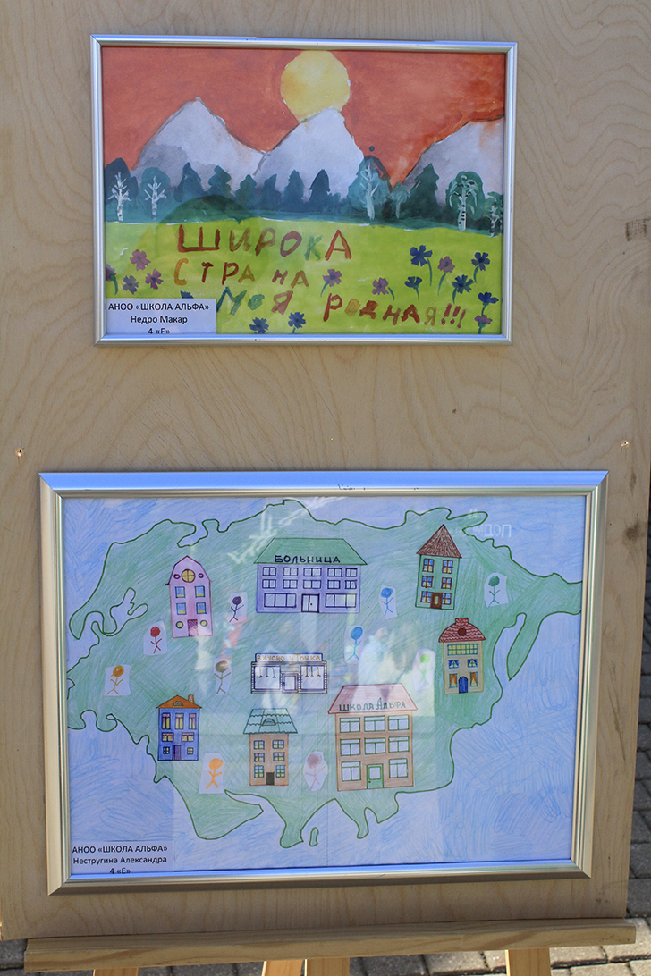Ярким украшением праздника стала выставка детских рисунков «Широка страна моя Россия».