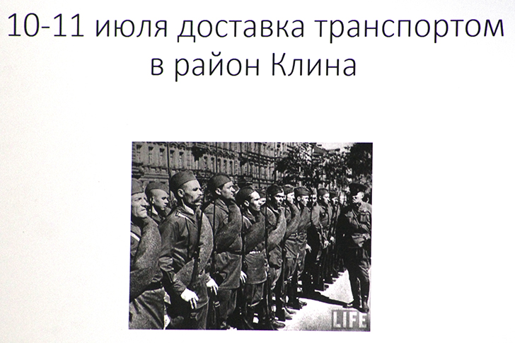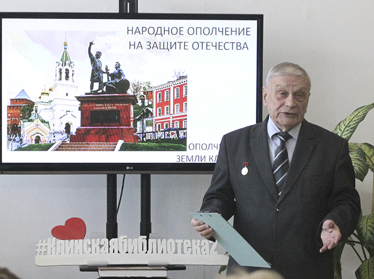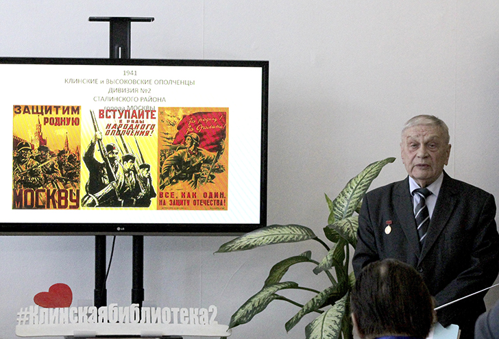 Презентация на большом экране оживляла лица и события, делая далекое прошлое почти осязаемым. Но главной темой встречи стало московское и клинское ополчение 1941 года. Время было тяжелое, кровавое, но именно тогда с особой силой проявился русский характер.