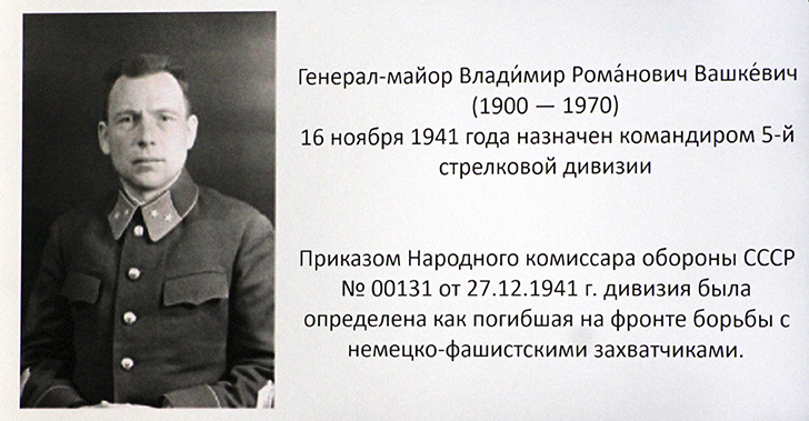 Возглавил дивизию генерал-майор Владимир Иванович Вашкевич — кадровый военный, понимавший, что под его началом идут не профессиональные солдаты, а вчерашние рабочие, учителя, студенты. В Клину формирование ополчения проходило в школе № 5 поселка Майданово под руководством комбата Михаила Акимовича Галкина. Именно здесь, в стенах обычной школы, решалась судьба страны.