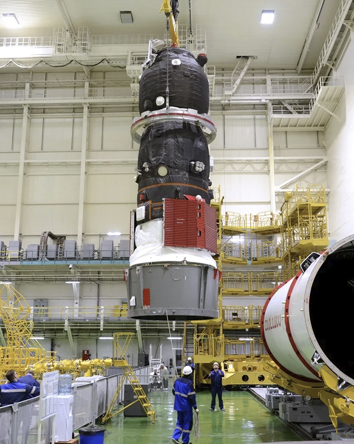 Космический грузовик на Байконуре активно готовят к старту. Сегодня специалисты Роскосмоса соединили корабль с переходным отсеком.