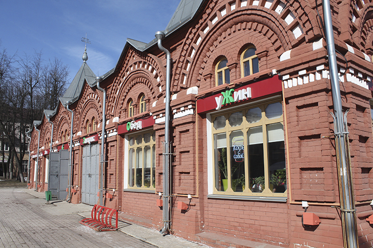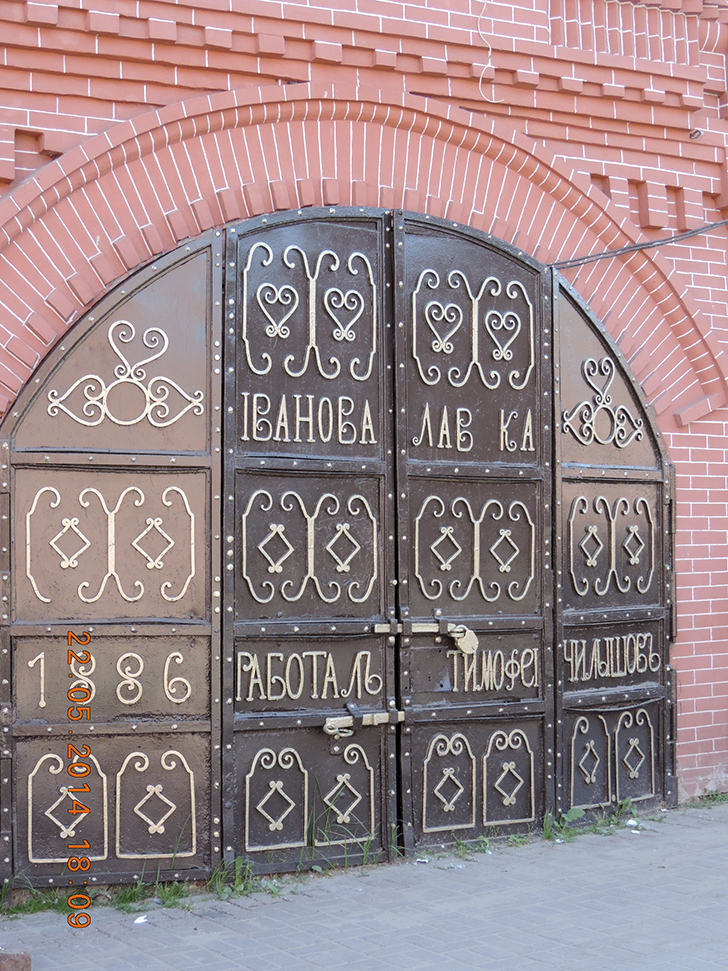 От старых Торговых рядов остались небольшие участки неоштукатуренного кирпича. И там видна та самая, «родная» кладка со своей особой энергетикой. Радуют ворота с кованой надписью: «Иванова лавка 1886 работал Тимофей Челышев». Словно привет из позапрошлого века, из тех времён, когда здесь кипела жизнь, звенели монеты, звучали голоса купцов и покупателей.