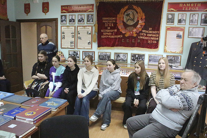 Их встретил хранитель музея Владимир Григорьевич Афонин — человек, чья любовь к истории и уважение к чужому подвигу наполнили экскурсию особым, трепетным смыслом. За каждым экспонатом, за каждой пожелтевшей фотографией стояла не просто дата, а судьба. Владимир Григорьевич с волнением рассказывал о тех, кто стоял у истоков создания структуры МВД, о сотрудниках, отдавших жизни во имя служения закону.