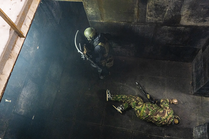 Основной задачей тренировки стала отработка алгоритма работы штурмовых групп при проведении специальных мероприятий в здании.