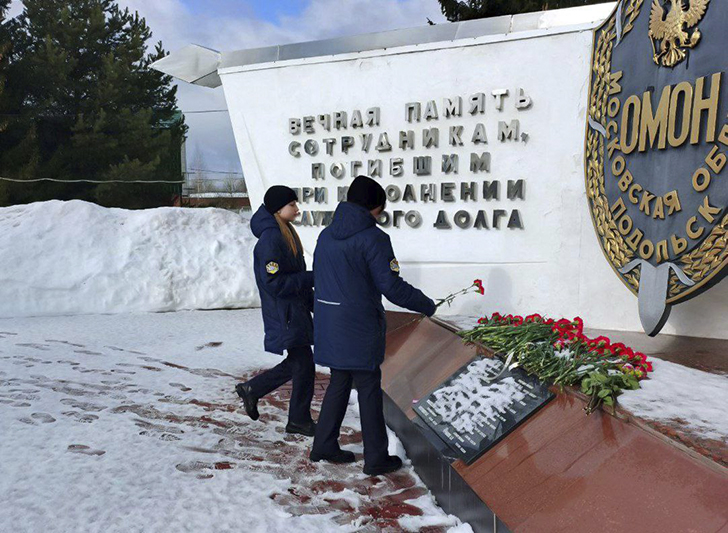 Перед началом мероприятия собравшиеся почтили память сотрудников ОМОН, погибших при исполнении служебного долга, — росгвардейцы вместе со школьниками возложили цветы к памятнику героям.