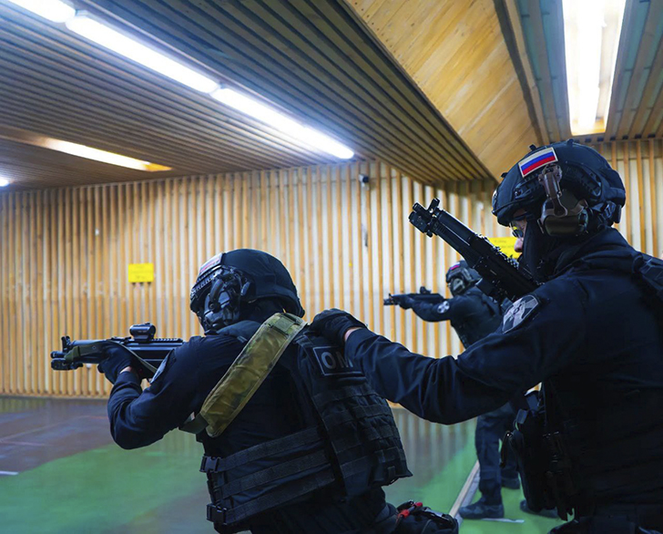 Далее росгвардейцы выполнили комплекс стрелковых упражнений с пистолетами-пулеметами, направленных на повышение точности и скорости принятия решений.