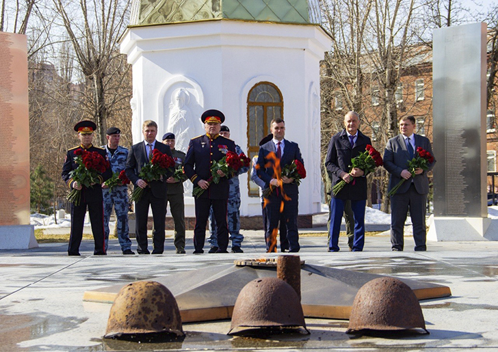 Праздничное мероприятие началось с церемонии возложения цветов к Мемориалу славы. Собравшиеся почтили память воинов Отечества минутой молчания.