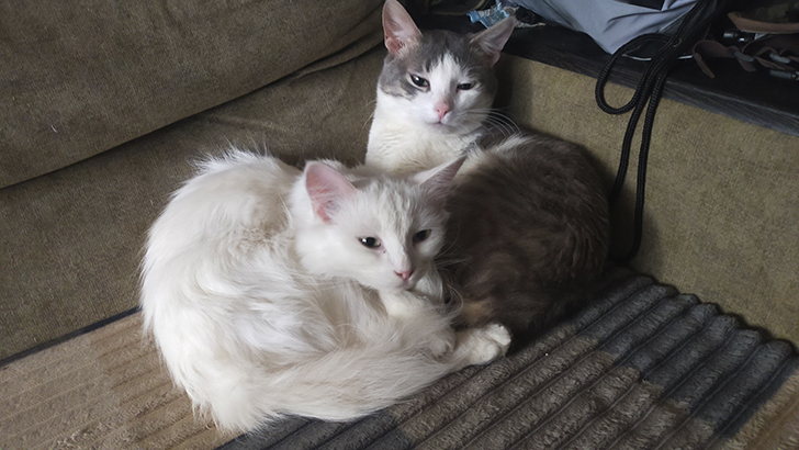 Однако настоящим испытанием стало знакомство с кошачьей семьей. Здесь обитают трое — целое кошачье царство со своими законами, иерархией и, конечно, правом первой ночи (и вообще любого времени суток). Я наблюдал за этой встречей с особым трепетом, ожидая фейерверка эмоций.
