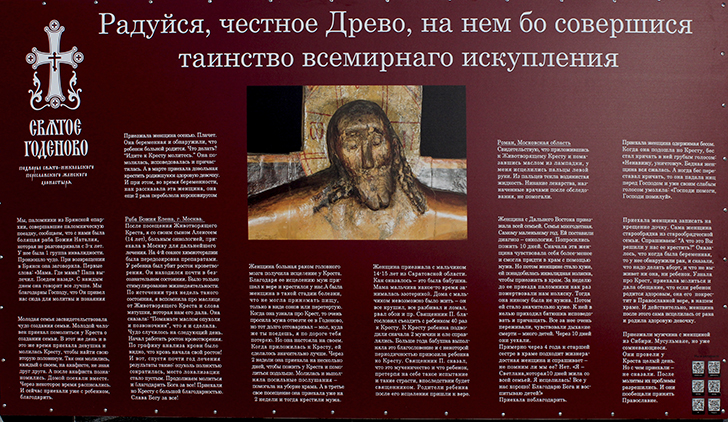 «Святое Годеново» среди глухих ростовских лесов светит для вас и ждет, чтобы распятый на Кресте Христос соединил нас всех со Своим Воскресением. Господь встречает вас в Годеново, возлюбленные братья и сестры — входите! Входите с верою, со слезами умиления и с надеждой на великую и богатую милость Божию, истекающую от Животворящего Древа Креста Господня.