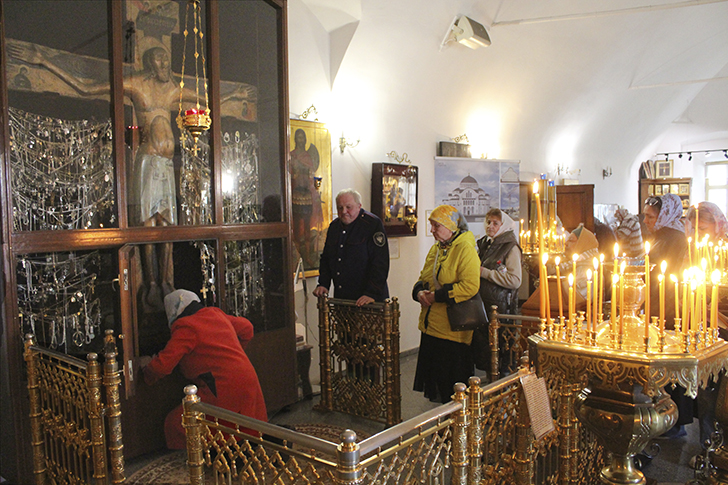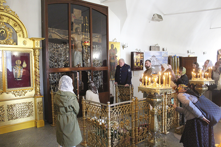Но на этом паломничество не закончилось. Путь лежал далее — в село Годеново, в церковь святителя Иоанна Златоуста, где уже более шести веков пребывает величайшая святыня Русской земли — Животворящий Крест Господень.