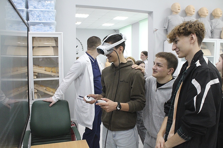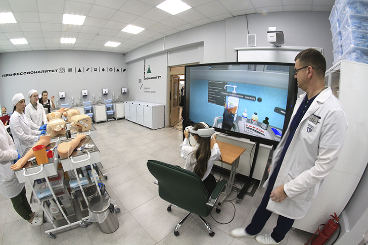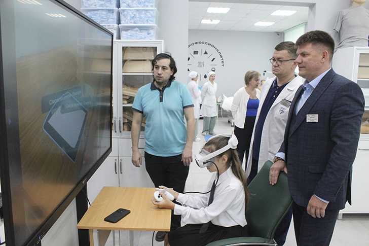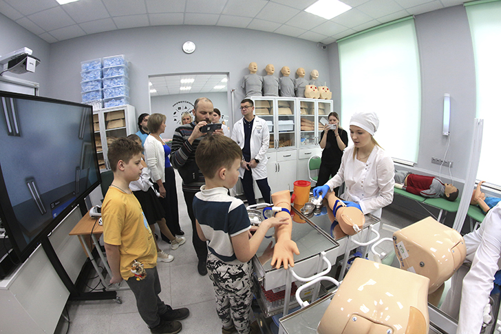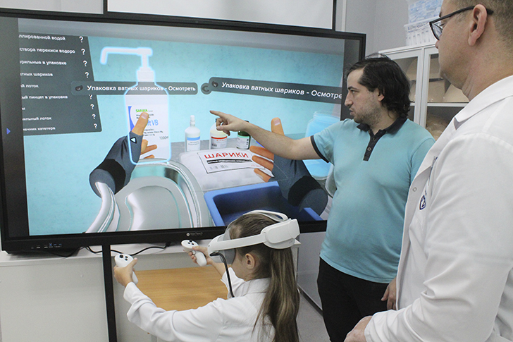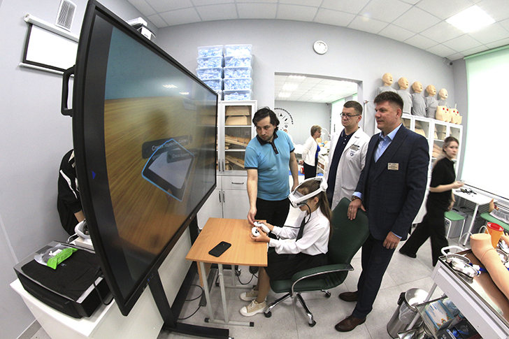 А дальше — технологии, от которых захватывает дух. Благодаря очкам виртуальной реальности каждый желающий мог войти в медицинский симулятор, принять виртуального больного и оказать ему помощь.