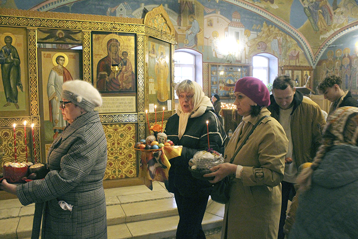 Особенно трогательным было то мгновение, когда благословение настоятеля распространилось на всех присутствующих — и на взрослых, и на детей, и на тех, кто только переступил порог храма, и на тех, кто выстаивает здесь каждую службу. Это благословение, словно теплый ветер, прошло по рядам, согревая души и даря каждому ту самую пасхальную радость, которую невозможно купить или заслужить — её можно только принять с открытым сердцем.