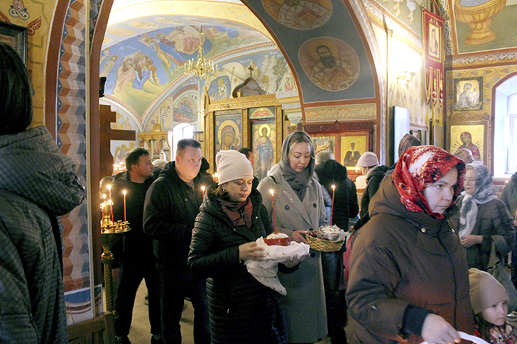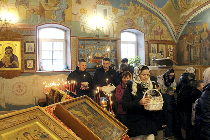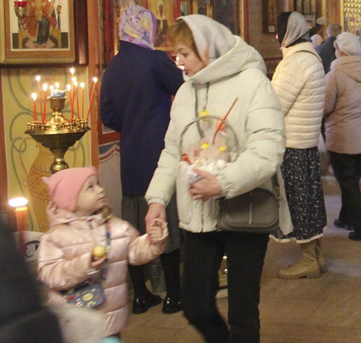 Особенно трогательным было то мгновение, когда благословение настоятеля распространилось на всех присутствующих — и на взрослых, и на детей, и на тех, кто только переступил порог храма, и на тех, кто выстаивает здесь каждую службу. Это благословение, словно теплый ветер, прошло по рядам, согревая души и даря каждому ту самую пасхальную радость, которую невозможно купить или заслужить — её можно только принять с открытым сердцем.
