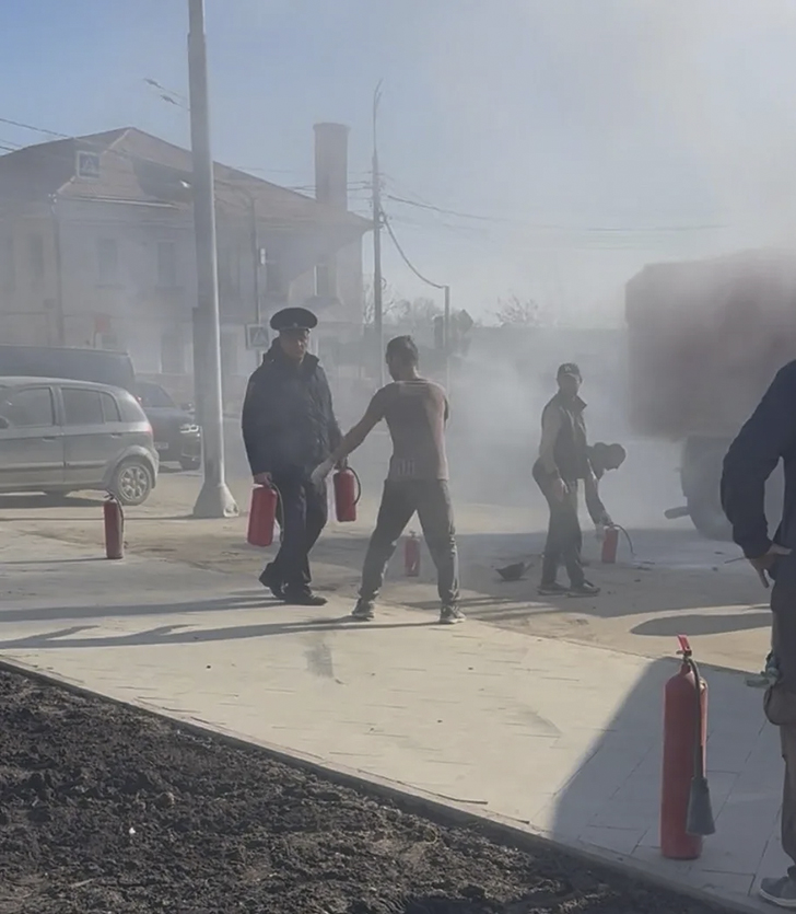 Увидев поднимающийся столб густого дыма, росгвардеец незамедлительно выдвинулся к месту происшествия. На проезжей части он обнаружил грузовой автомобиль «Камаз», у которого в результате взрыва колеса произошло возгорание.
