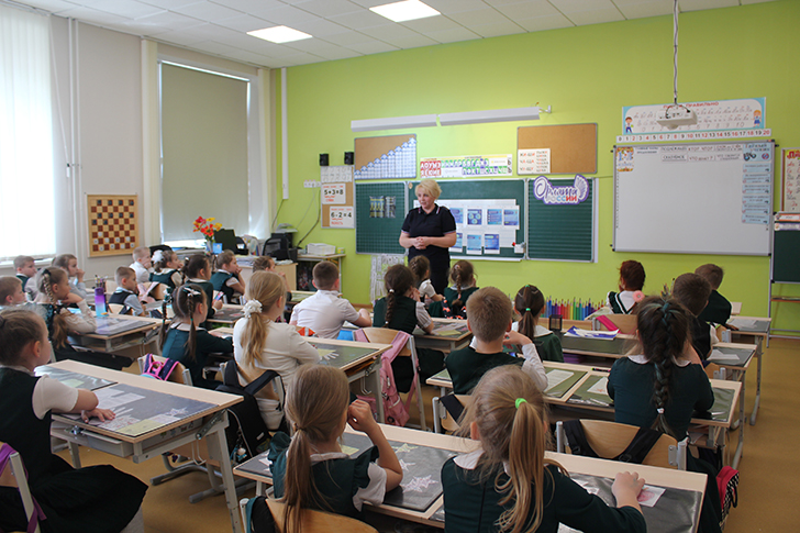 Очередное занятие по дорожной грамотности прошло в МОУ-гимназия им. В.Н. Татищева. Гостем первоклассников стала инспектор по пропаганде безопасности дорожного движения отдела Госавтоинспекции г.о. Клин, капитан полиции Анжела Волкова.