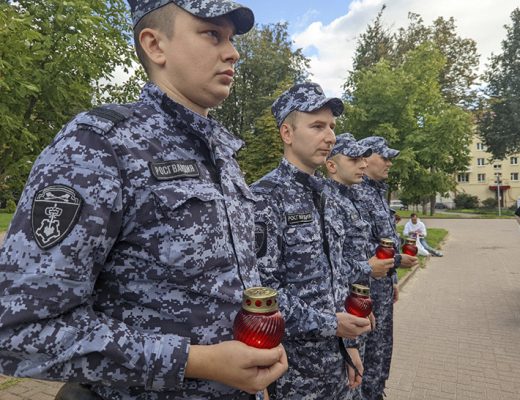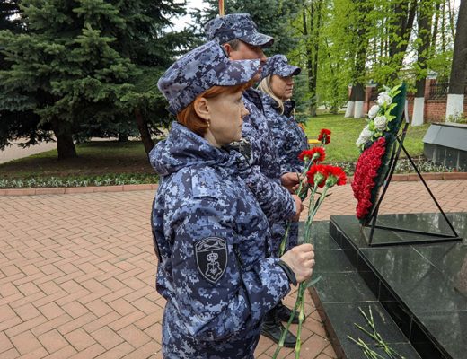 В память о героях, павших в годы Великой Отечественной войны, сотрудники вневедомственной охраны возложили гвоздики к мемориальному комплексу “Героям-Панфиловцам”.