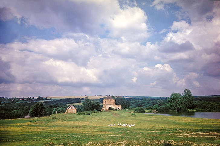 «Самая деревня была по нашим местам довольно большая и одна из зажиточных, несмотря на кабак, превращенный позднее в винную монополию, где торговал уже не кабатчик, а «винополец». Деревня была вытянута в два порядка изб, которые были обстоятельного вида, крепкие и прямые, некоторые даже с дранковой крышей. В конце деревни, немного поодаль, виднелся небольшой, но очень глубокий пруд, по берегам которого росло несколько старых берез.